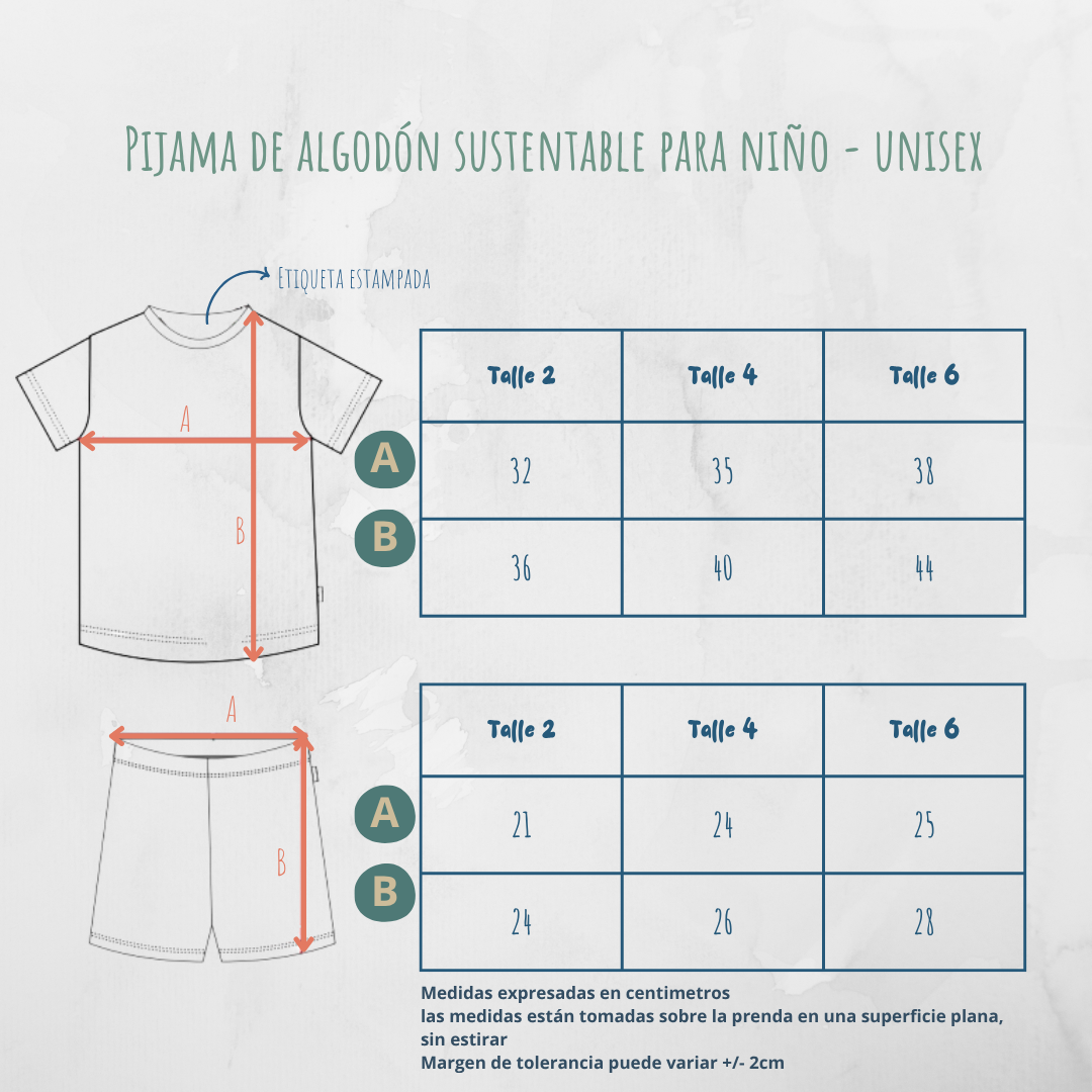Cada talle está diseñado siguiendo las medidas estándar, pero recomendamos consultar nuestra tabla de medidas para encontrar el ajuste ideal para tu niño.